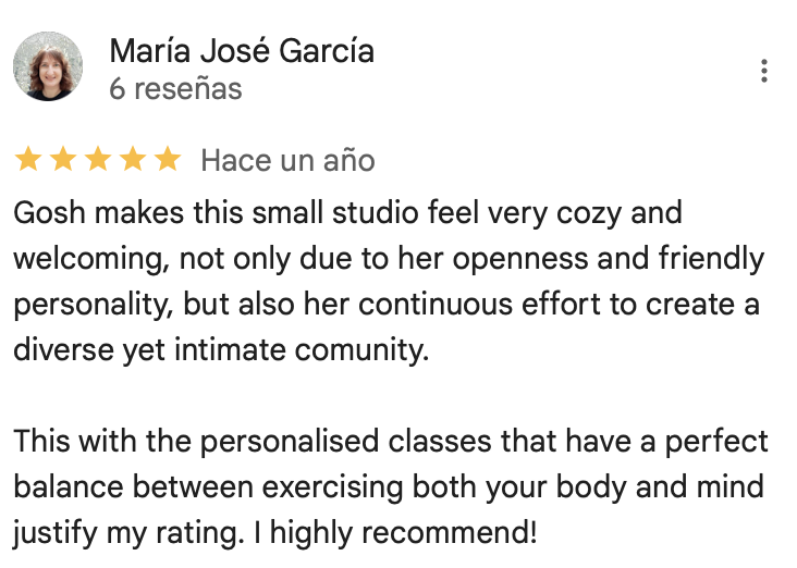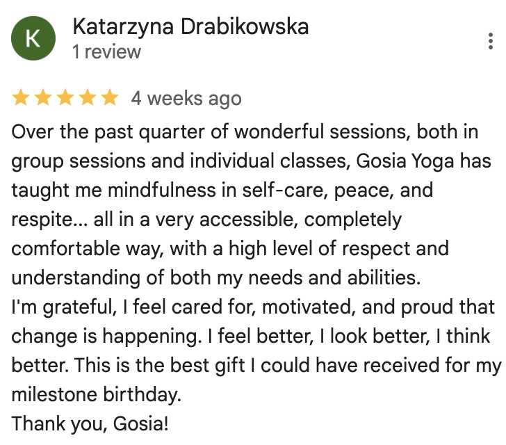 Yoga with Gosh doesn't end in the yoga room and that is what makes her unique. I can't recommend it enough!”